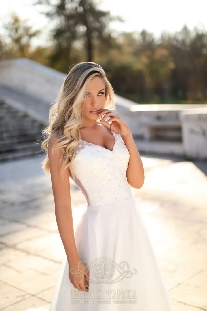 A 2106K keringőruha flitteres felsőrésszel, csillámos tüll szoknyával és pántos kialakítással készült. Átlátszó, flitteres hátrésze modern és különleges, uszály nélküli szabása pedig könnyű mozgást biztosít tánc közben. Bővebben