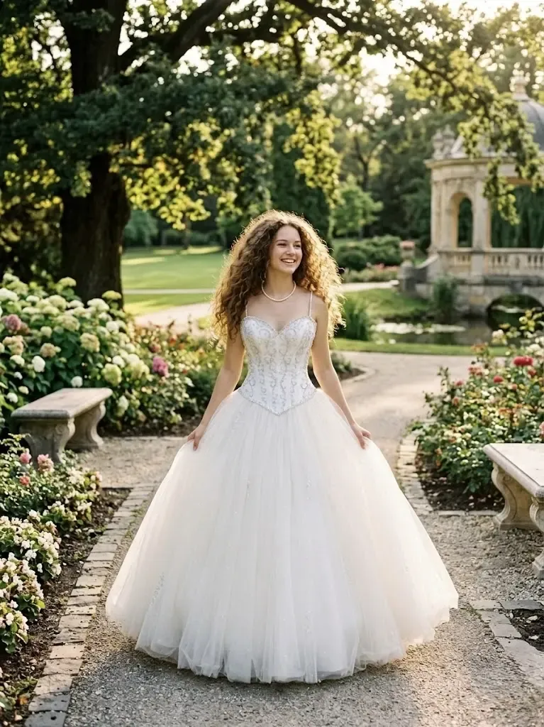 A 8653-as keringőruha a klasszikus hercegnős stílus modern, kifinomult megjelenését hozza el. A ruha nagy, több rétegű tüll szoknyája könnyed mozgást és látványos pörgést biztosít, így tökéletes választás keringőhöz, bálokhoz vagy bármilyen elegáns eseményhez.