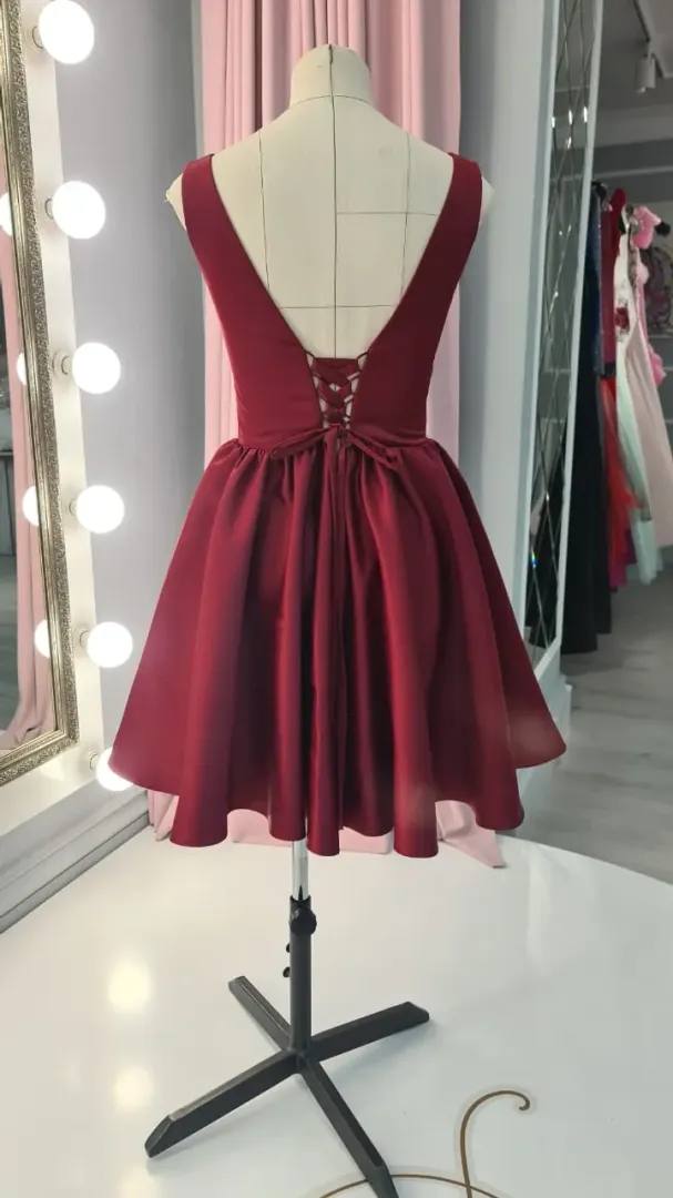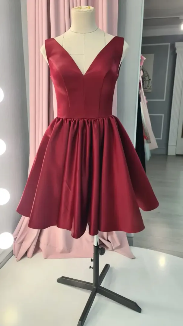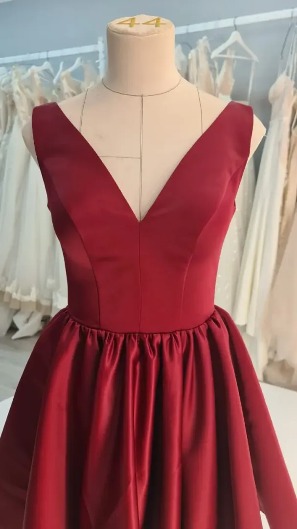 Az Amaréna menyecske ruha a lendületes, modern és nőies megjelenés tökéletes megtestesítője. Bordó színe elegáns és hagyományos menyecske árnyalatot ad, miközben a szatén anyag fényes, ünnepélyes hatást kölcsönöz a modellnek. A mini, térd fölé érő, bő szabású szoknya gyönyörűen pörög tánc közben, így ideális választás a menyecsketánchoz vagy az esti bulis hangulathoz.