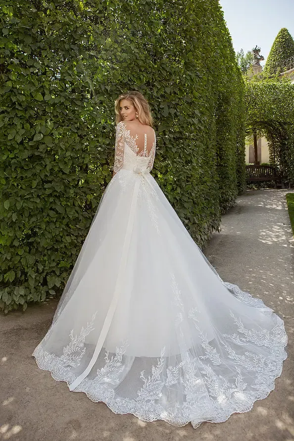 Ez a ruha azoknak a menyasszonyoknak készült, akik időtlen eleganciára, romantikus részletekre és igazán különleges megjelenésre vágynak.