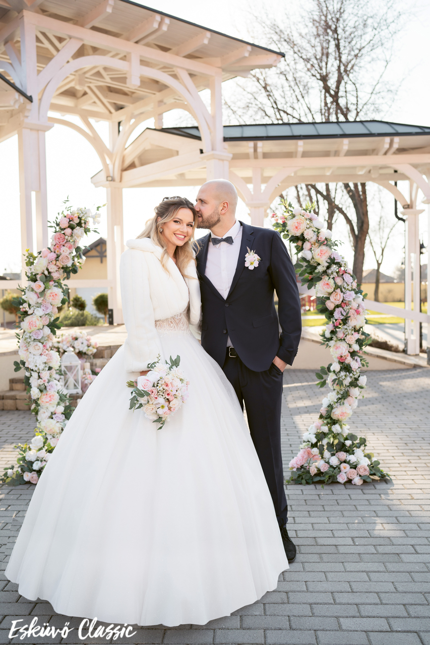 Valamint a téli esküvőkre kedvezményesen kölcsönözhetők a Szalonban készletek lévő meleg stóla, szőrmés kepp, műszőrme bunda a ruhák mellé. Megfázástól sem kell tartani még a legkivágottabb ruhában sem, mert ilyenkor töltenek a menyasszonyok a legkevesebb időt  a szabadban, valamint mindenhol fűtenek, már a legtöbb templomban is van fűtés. Jó megoldás lehet, ha egy helyre szervezitek meg a házasságkötést és az azt követő lagzit.
