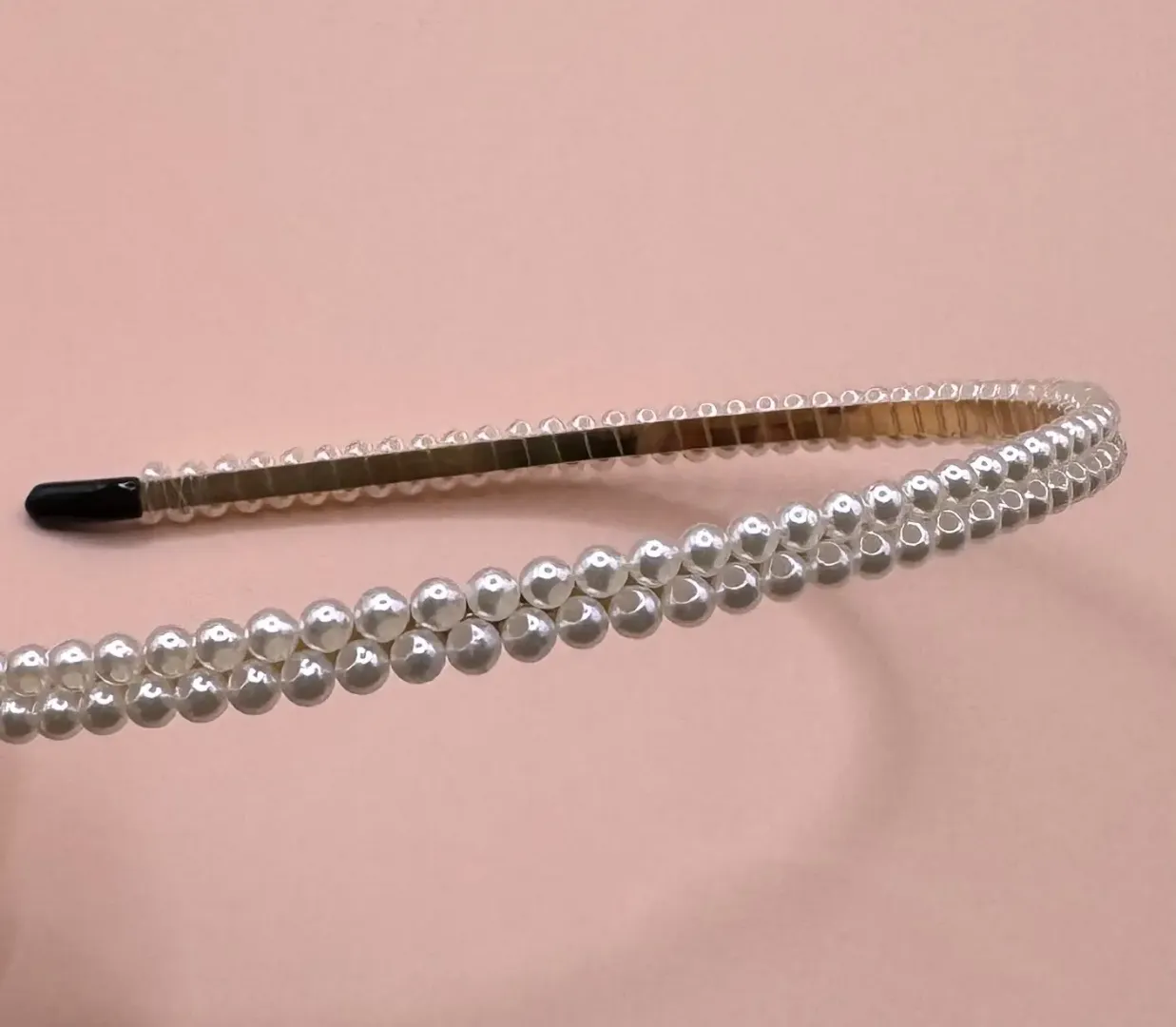 Az H034 hajráf két sor apró gyönggyel készült, elegáns és visszafogott fényt adva a frizurának. Alkalmi és menyasszonyi frizurákhoz egyaránt tökéletes választás. Bővebben