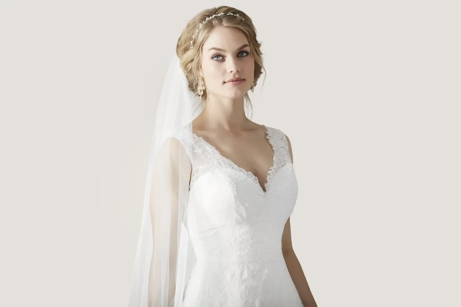 A modell nem uszályos, így könnyed mozgást és kényelmes viselést biztosít. A ruha hófehér árnyalata klasszikus, letisztult megjelenést kölcsönöz. A fazont a terhesség első 4 hónapjában ajánljuk, amikor a kismama még kényelmesen viselheti a hagyományosabb vonalvezetésű menyasszonyi ruhákat.