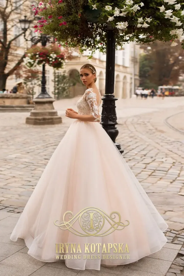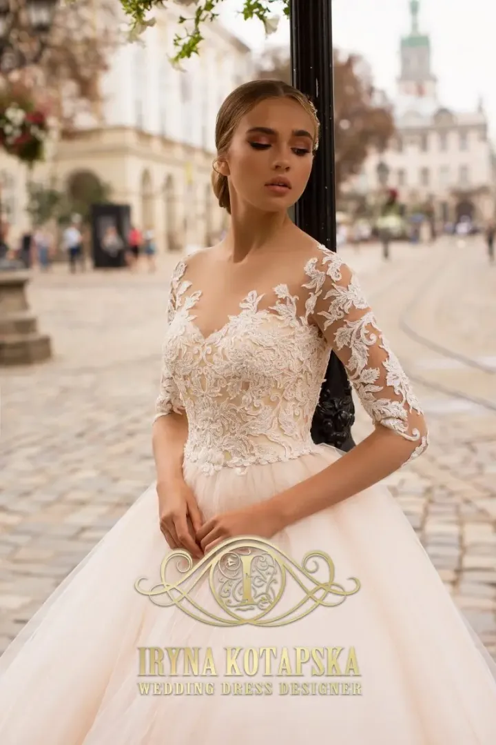 A 2009-es menyasszonyi ruha a romantikus eleganciát és a praktikus kivitelezést ötvözi a modern menyasszonyok számára. A felsőrészt prémium csipkéből készítették, amelyet gyöngyök és kristályok díszítenek, illúzió tüll alapra helyezve, finom, nőies hatást keltve. A 3/4-es csipke ujjak eleganciát és kifinomultságot sugároznak, míg a hátán található apró gombok és cipzár biztosítják a tökéletes illeszkedést.