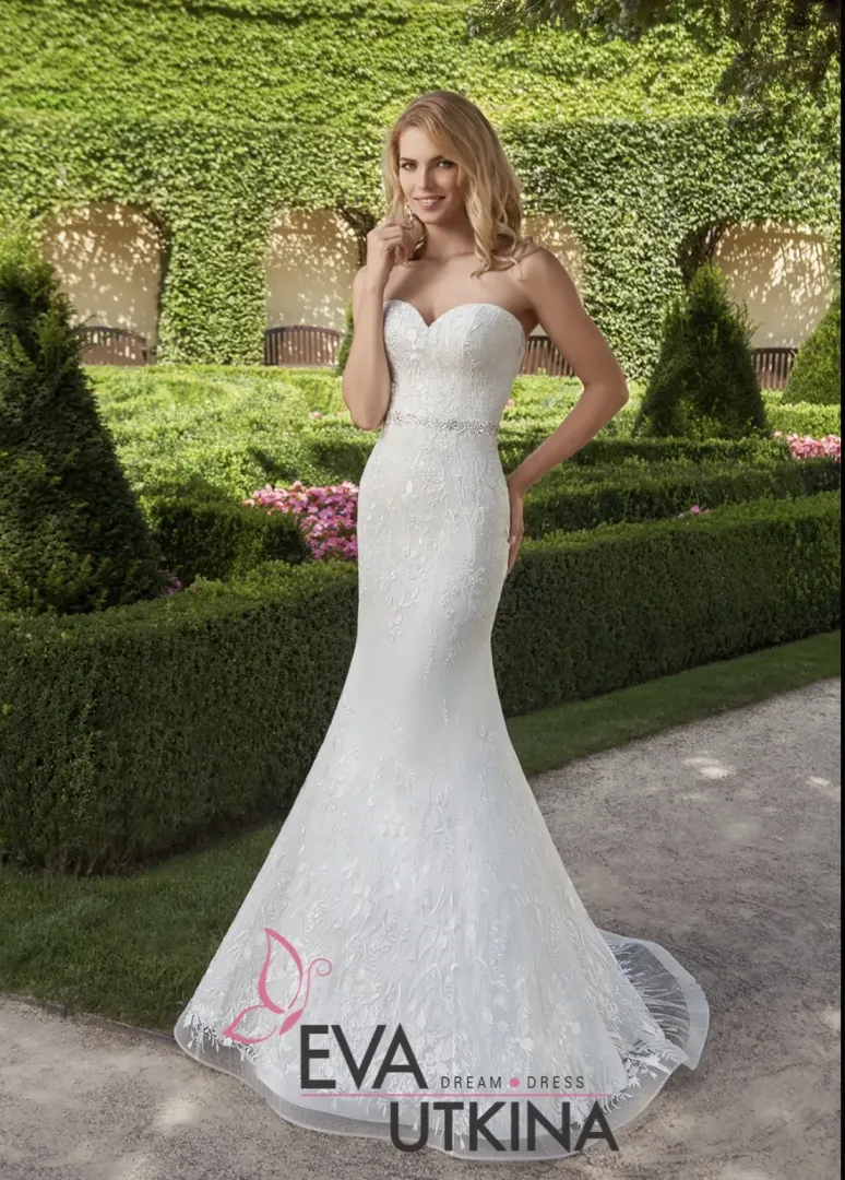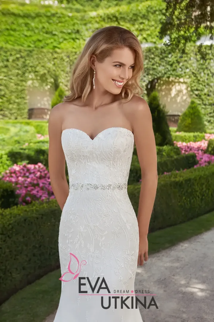 Az Elizabeth menyasszonyi ruha a nőies elegancia megtestesítője. Sellő fazonja tökéletesen követi az alakot, majd uszállyal folytatódva igazán látványos megjelenést biztosít.