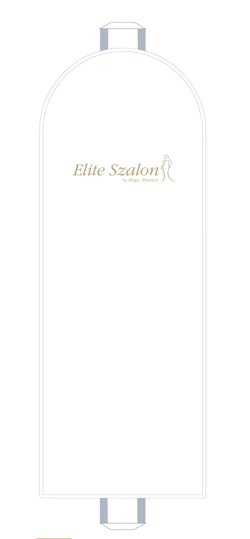 A hátoldalon elhelyezett arany színű Elite Szalon logó elegáns, exkluzív megjelenést kölcsönöz a ruhazsáknak, így nemcsak praktikus, hanem esztétikus kiegészítő is.