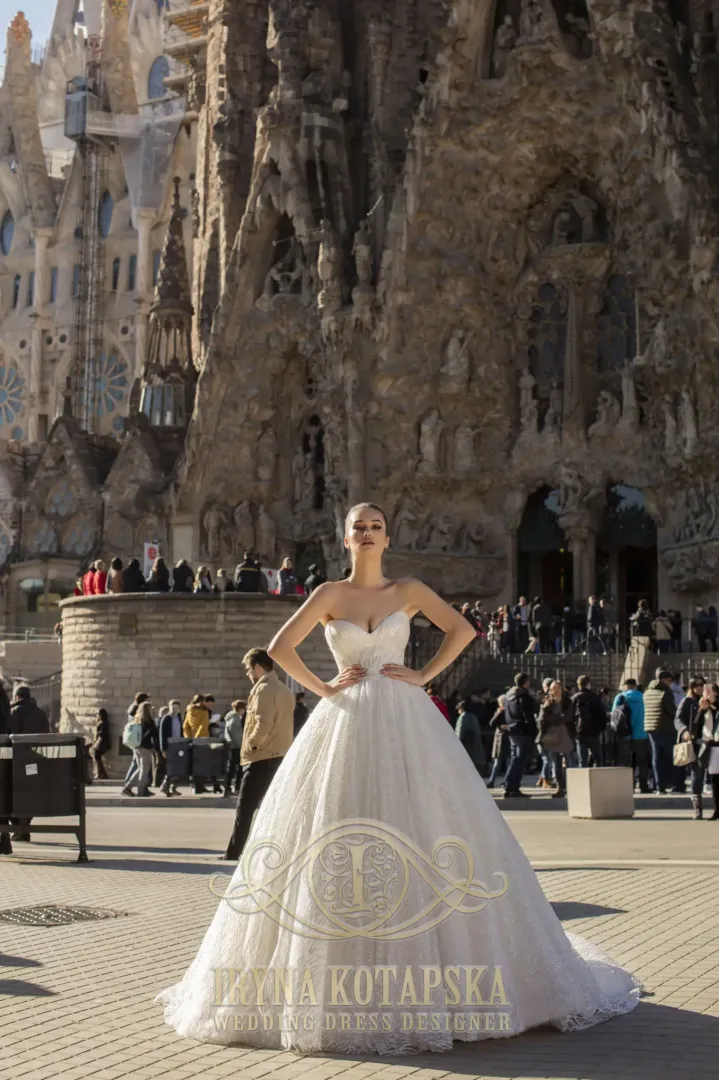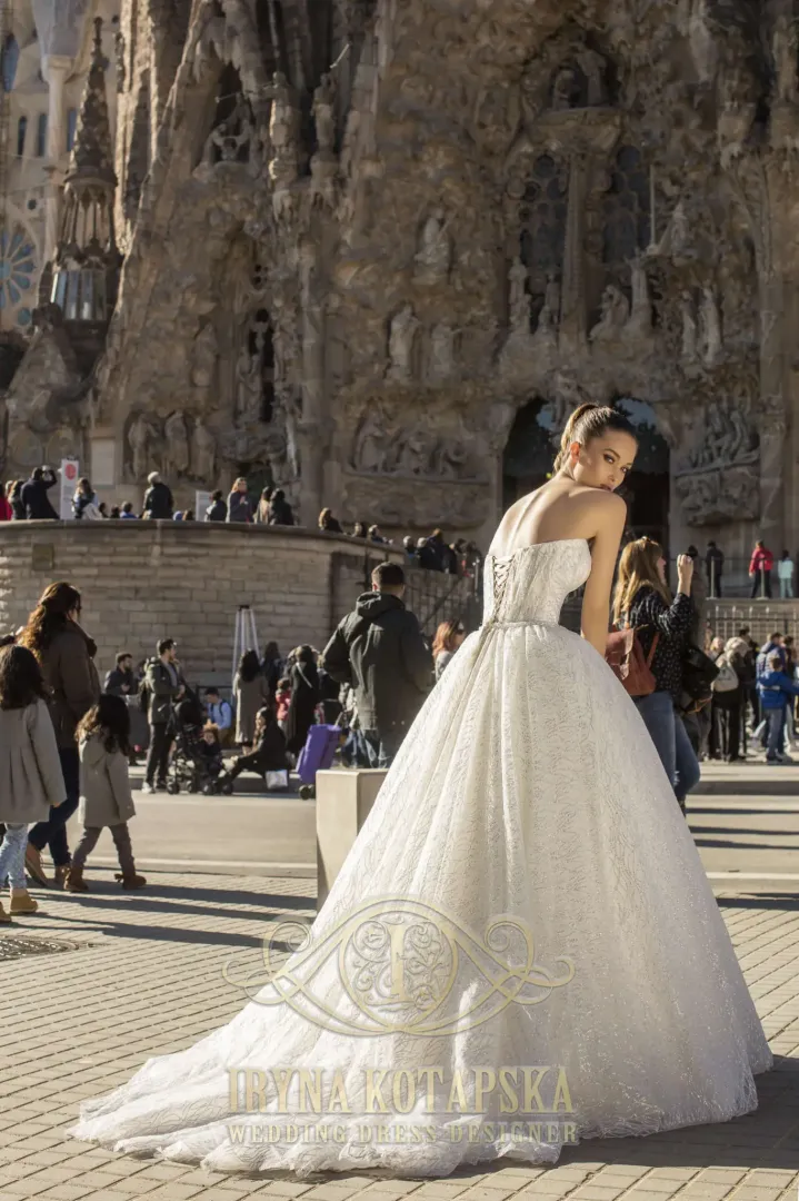 A ruha nagy, bő szoknyával készült, amely gyönyörűen követi a mozgást. A felsőrész korzettes kialakítású, amely formálja és tartja az alakot. A nagyobb kényelem és biztonság érdekében vékony spagetti pánt is tartozik hozzá, így nemcsak esztétikus, hanem praktikus viselet is.