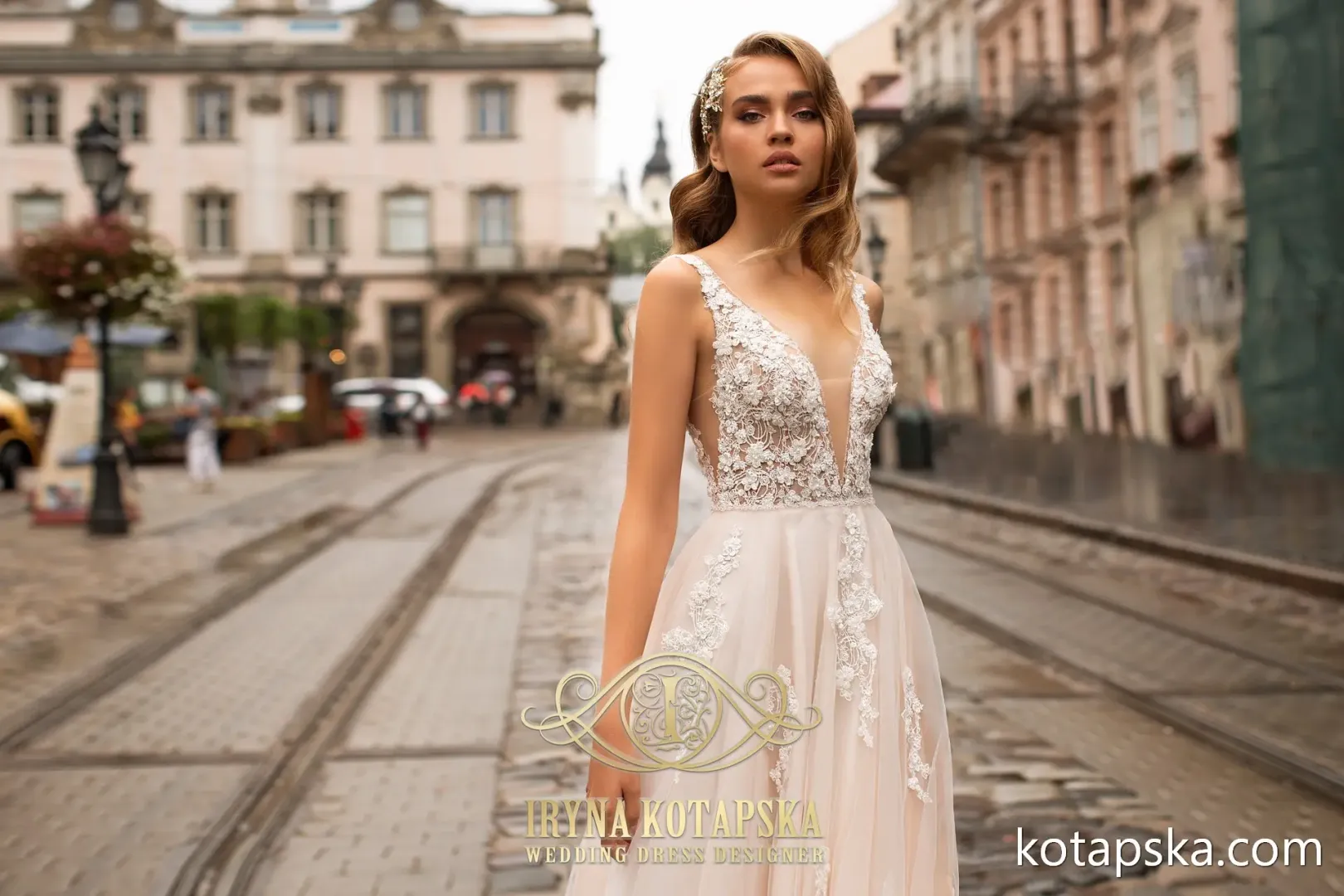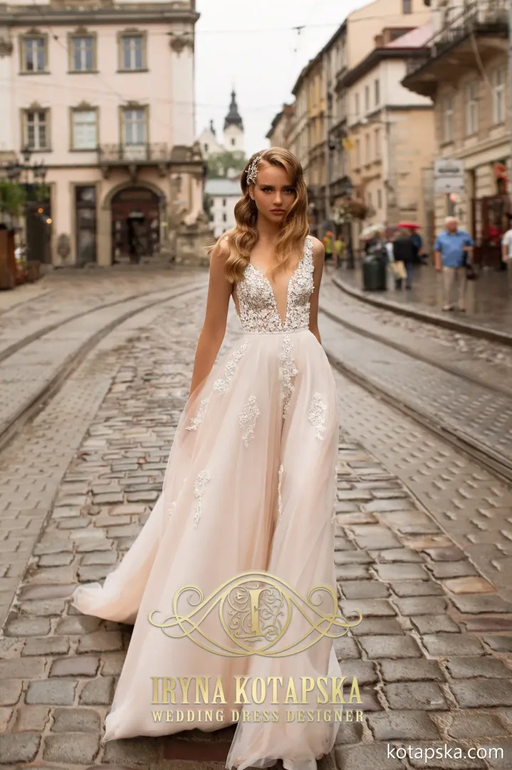 A szoknya második rétegében az illúzió tüll anyaga folytatódik, amely finom, halvány pezsgő árnyalatot kölcsönöz a ruhának és egyedi hatást teremt mozgás közben.